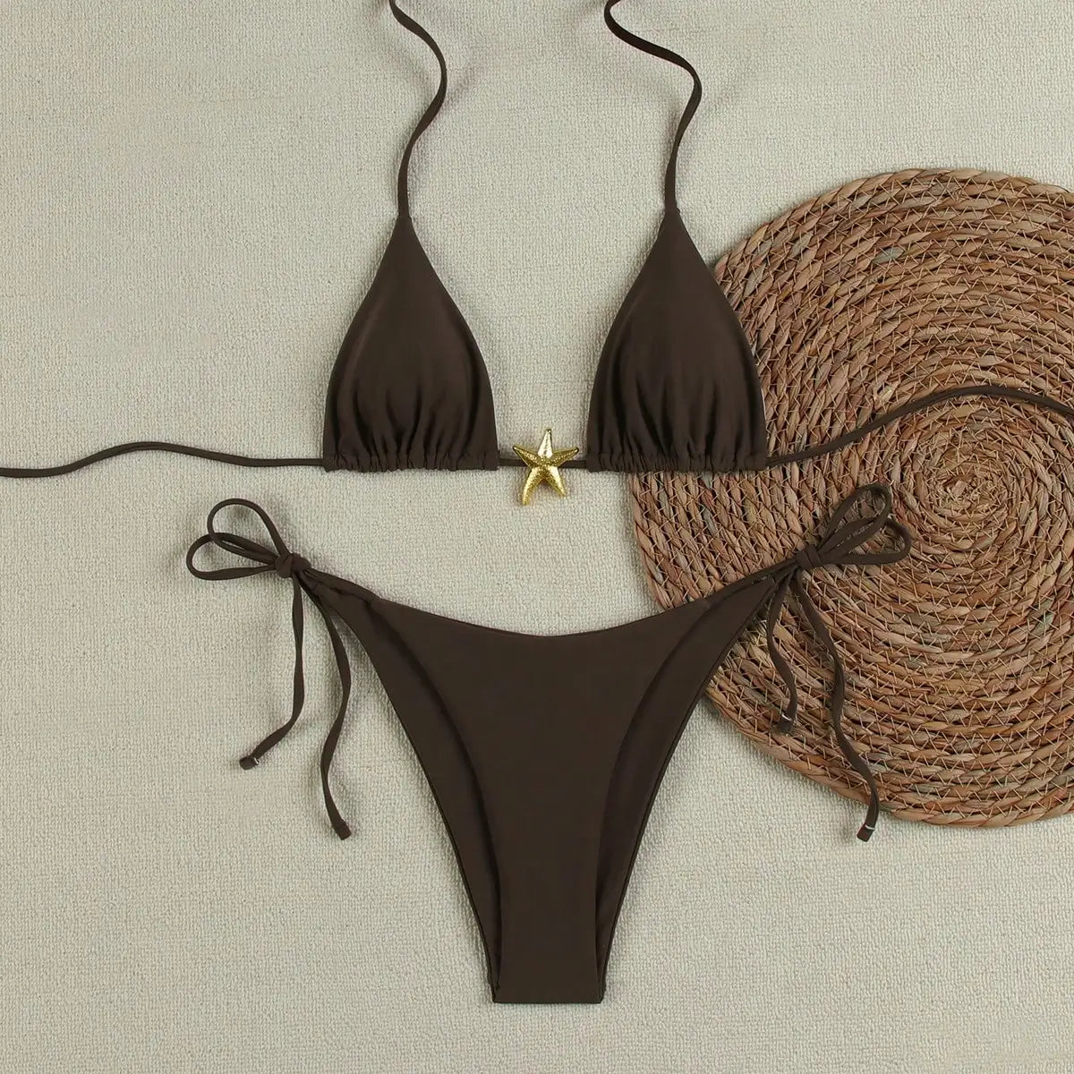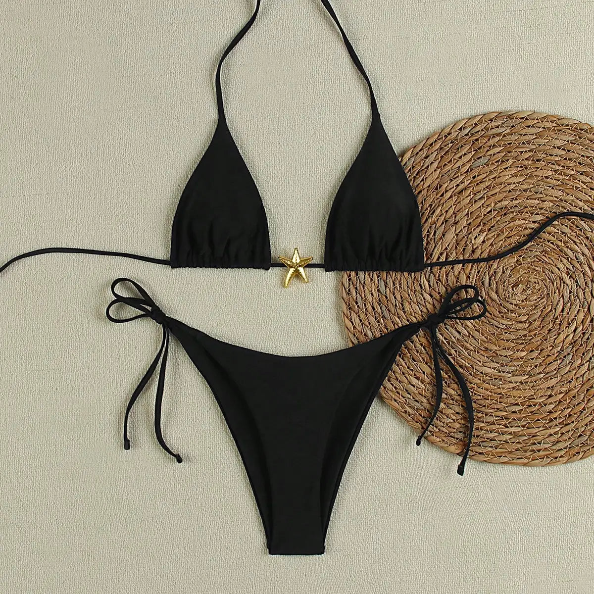Laat je stralen in de Marina bikini, een perfecte mix van speelsheid en elegantie. Deze set, met een opvallende sterrenprint, is ontworpen om je figuur te accentueren en je zelfvertrouwen te vergroten. De triangel top met verstelbare bandjes biedt comfort en ondersteuning, terwijl het Brazilian broekje zorgt voor een flatterende pasvorm.